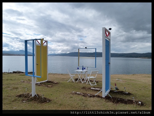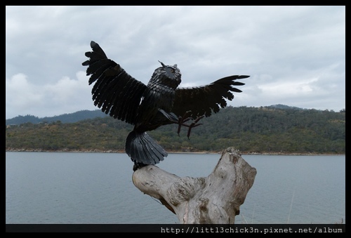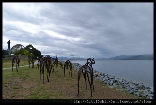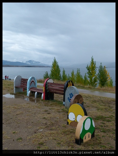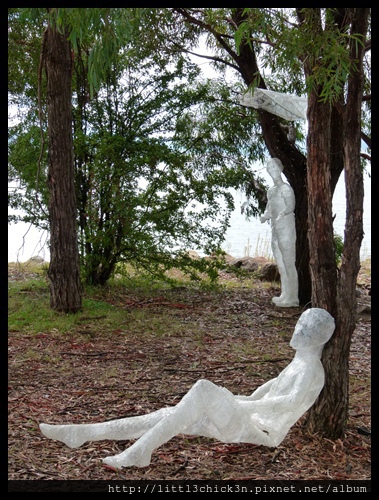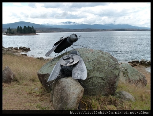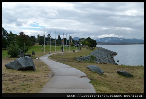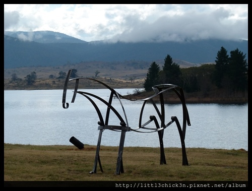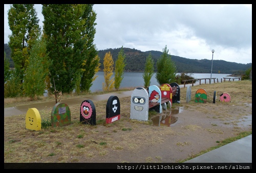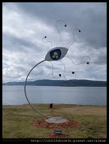 只好繼續開到離Jindabyne鬧區較近的湖邊停車場停車,這時雨已經停了。打算去參觀復活節期間才有的雕展Lake Light Sculpture。