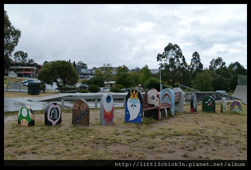 旁邊有幾張有椅子方便大眾休息觀看玩滑板的人。這些椅子都有有趣的圖案,你若繞著它們一圈便會發現其正反兩面的畫不一樣。