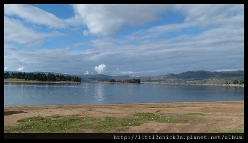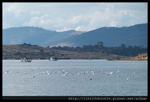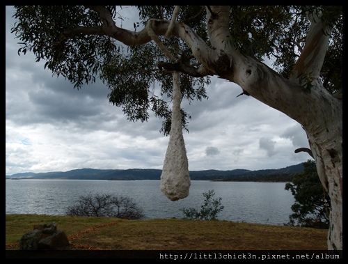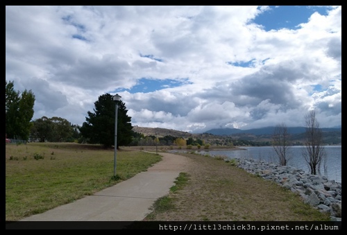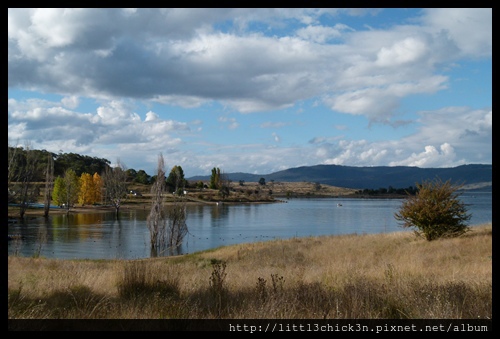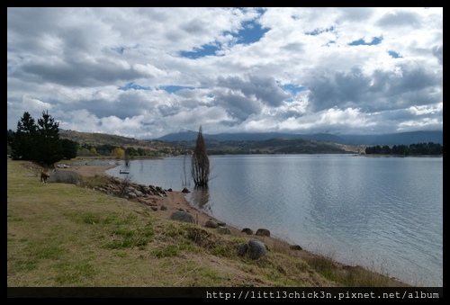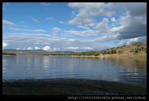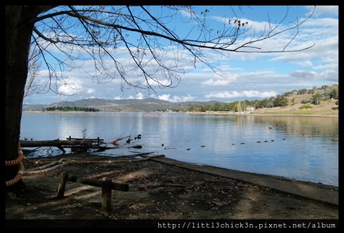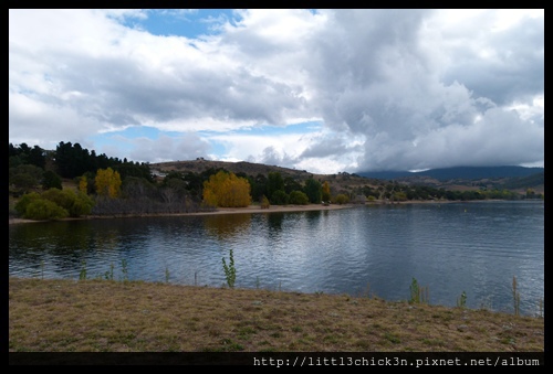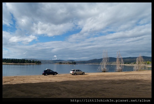 車子一直開到一處面向Lake Jindabyne又可以停車的地方。把車停在那裏,拿起三明治吃午餐。很不幸的是,雨下的超大,想下車拍照也難。邊吃邊等,但這雨一直下,没有要停下來的意思,真是可惡!
