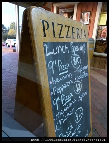 從這裏,我花了一個小時走回停車的地方。開車前往Nuggets Crossing Shopping Centre找地方吃晚餐,把車停好後先在附近繞一圈。還真不知道要吃什麼好,最後決定到Bacco晚餐。這家餐廳似乎每一晚都很滿,裏面分成兩個區域。一區只能點彼薩跟義大利麵,你走進來若看到有位子就坐,没位子可以等也可以選擇外帶。而另一區菜單選擇比較多,不是只有彼薩跟義大利麵而已,但店家勸大家最好事先訂位。不訂位也行,但很難有座位就是了。