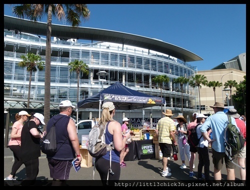 八點多抵達Milsons Point 補給站,排隊隊伍好~~長啊!他們排隊來拿帽子跟活動護照,走到隊伍最後跟著排隊。等候期間,擺水果攤的顧員走來給我們吃些他切好的水果。那些水果不會賣,你只需捐些銅板,再去拿切好的水果吃,不限數量。