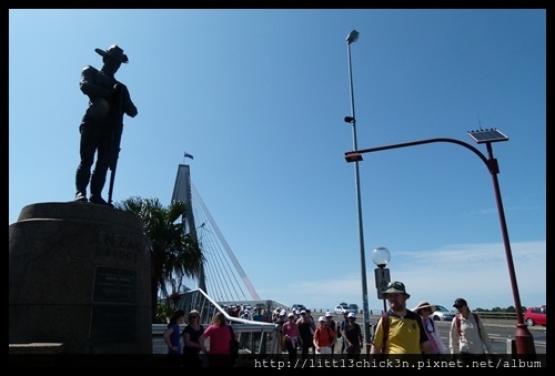 一大早坐火車到Milsons Point 補給站,之所以會選從這裏出發是因太陽的關係。從這裏開始走的話,太陽總是在我背後,這樣就不用迷著眼走路了。途中才發現没帶註冊單,慘了!回家拿再坐到市中心又很浪費時間,算了,到時看對方讓不讓我過,不讓我過的話頂多不能享用免費公車跟拿不到帽子跟收集圖章用的活動護照,我還是能跟著人群走。没什麼大不了的。