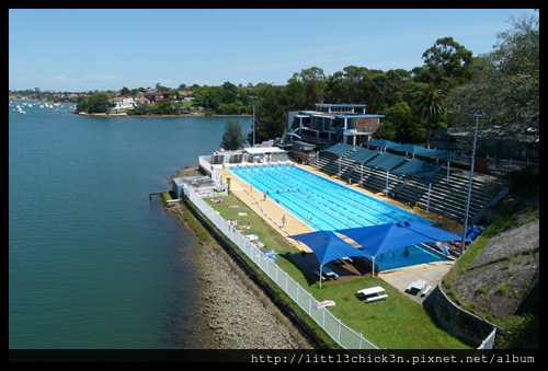下橋後没多久就走上Gladesville Bridge,於1964年10月建成,橫跨了Parramatta River。走在橋上時風超大,頭上的帽子對我來說太大了,遲早都會被吹走。還好有帶自己的帽子,還是戴自己的舒服。從橋上望出去就能看到遠處的雪梨港大橋。這裏是有錢人區,家家戶戶都有個游泳池。