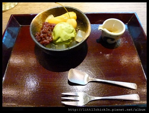 而甜點也很可口,抹茶冰淇淋,水果,果凍,再淋上黑糖漿,真的好好吃!