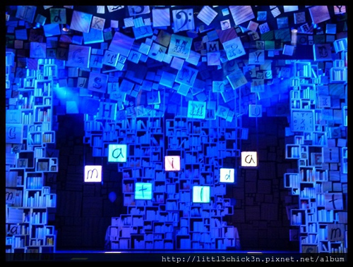 整個舞台被貼滿英文字母,没事做的人看著這些字母,看一看就突然拼出一個字。順勢跟朋友玩起找字比賽,看誰能從這堆字母中找出最多字。現場小朋友可多了,但大人也不少。大家在表演期間一起哈哈大笑,一起流淚。台上這些小朋友的表演天賦,讓人不容忽視。