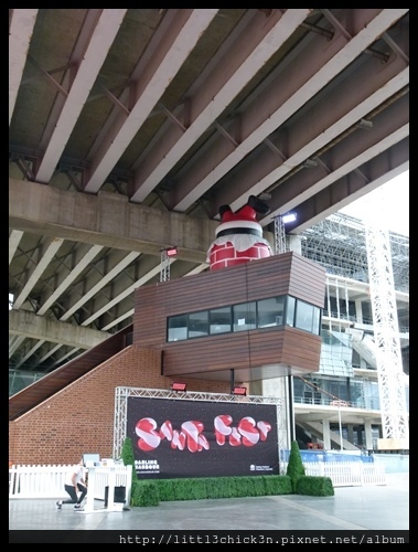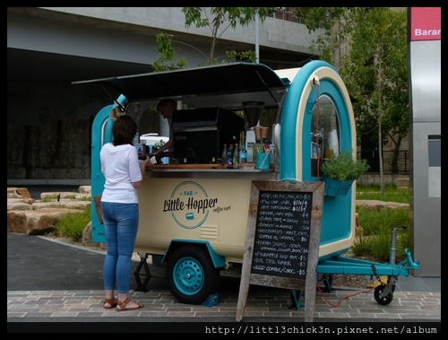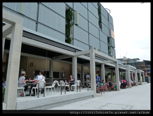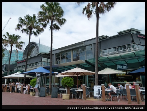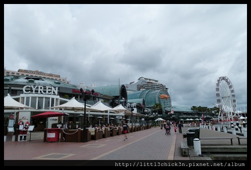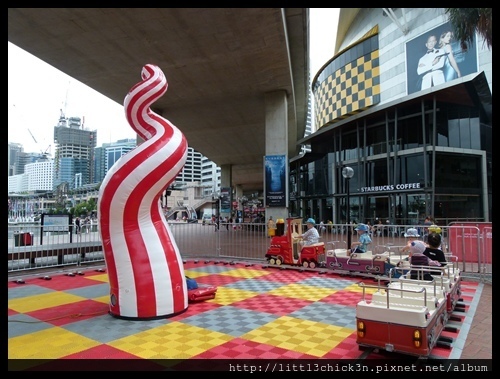 從飯店出發,從Liverpool Street進入Darling Quarter再一路走到Harbourside Shopping Centre,從那一整排的餐廳選一家來享用早午餐。途中還經過用牛奶箱堆出來的聖誕老人,還有各種能誘惑小朋友來玩的聖誕設施與活動。