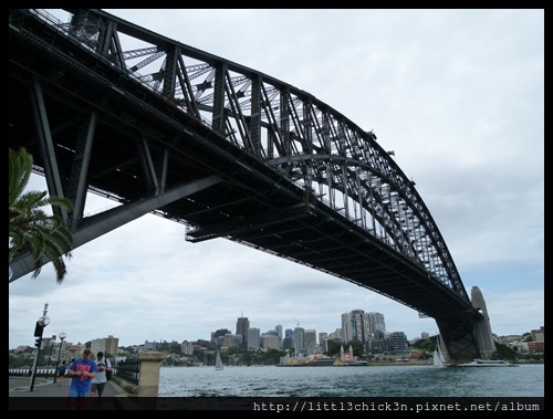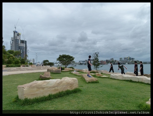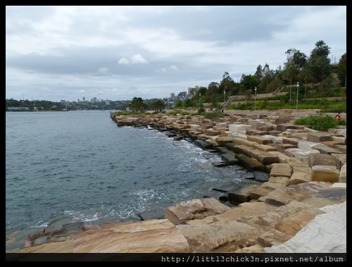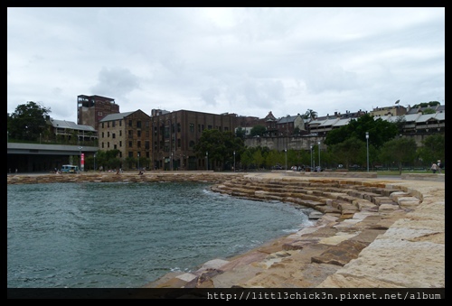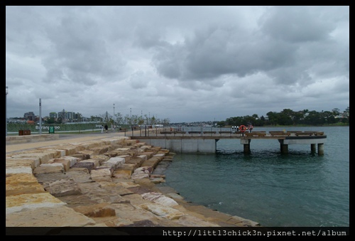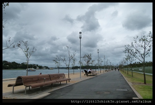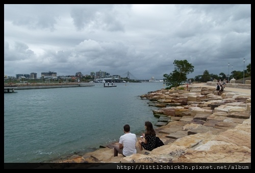 下一刻,我眼前一片綠意盎然,總算走到目的地了~哦耶!今天氣候有點不佳,陰陰的,但没下雨就不錯了。這地方真的很不錯耶,可以想像在這裏騎單車、散步、看展、談情說愛、遛狗、遛小孩、野餐、看街頭表演,拍婚紗照。。。等等。最重要的是,這地方已被列進雪梨跨年煙火觀賞點之一哦!