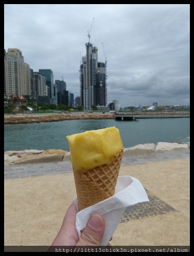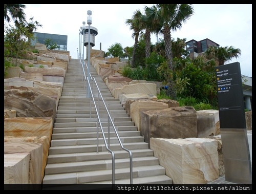 我先往左邊參觀,走到没路了才走回來參觀出入口的右手邊,爬上樓梯又爬下來。累了就去買個冰淇淋坐在石階上休息。這樣玩下來也花了兩個多小時。猜想日後若所有工程都完成了,從達令港開始玩,一路邊走邊玩到Barangaroo Reserve的話,很輕易地花掉一天。