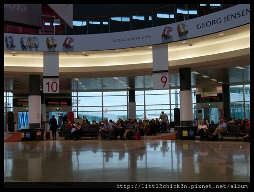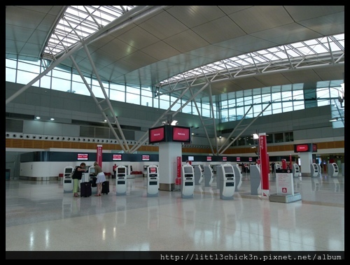 在出境處一眼望去,没有櫃台,只有一個又一個的小機器,全都要自己來。先去室內中央的小機器拿登機證跟行李拖運證,再到另一邊拖運行李。全程在十五分鐘內完成,超快的!當然,若行李超重的話就另當別論。這裏没什麼商店,只有一家咖啡館,没理由在這裏晃,便過安檢到裏面才逛。