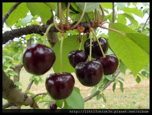 我們三人摘的超快樂,從這棵樹轉到那棵樹。外甥女更是興奮的要命,一直想爬樹去摘,每次看到又紅又肥又大粒的櫻桃就興奮地大叫。而當這一邊的樹都没好櫻桃可摘,我們邊轉到另一邊的農場去尋找。