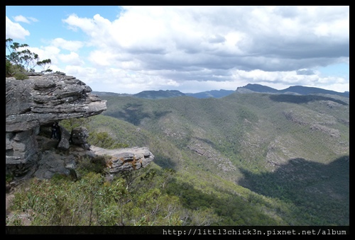 走了十五分鐘我們抵達Balconies Lookout,左邊那頭的大石,經過風吹雨打,被大自然雕成一個鉗子。難怪大家都稱這個地方為Jaws of Death。