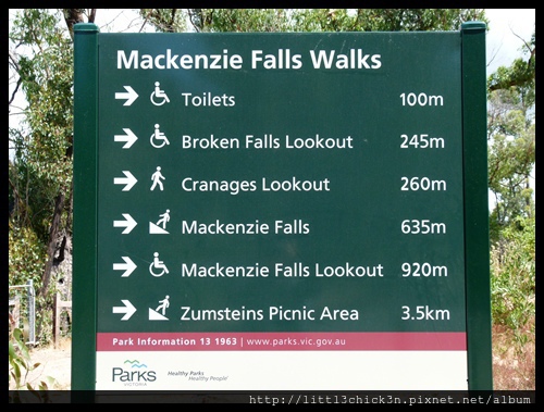 我們繼續開車前往下一個景點,這可是本日重點景點,也是The Grampians的熱門景點之一,它就是Mackenzie Falls。車子來到瀑布的停車場,這裏還有烤肉設施,聞著烤肉香,害我變得更餓。