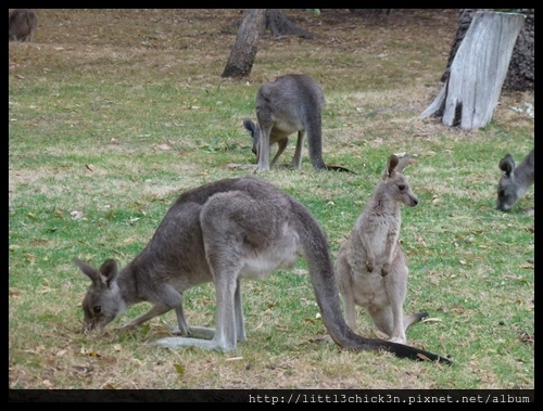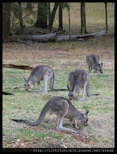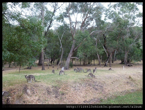 一下車,對面的青草地上滿是袋鼠,很悠閒地在那裏吃草。大家一雍而上跟牠們打招呼,怎麼樣都看不夠。太常看到袋鼠了,我現在倒對wombat比較有興趣。