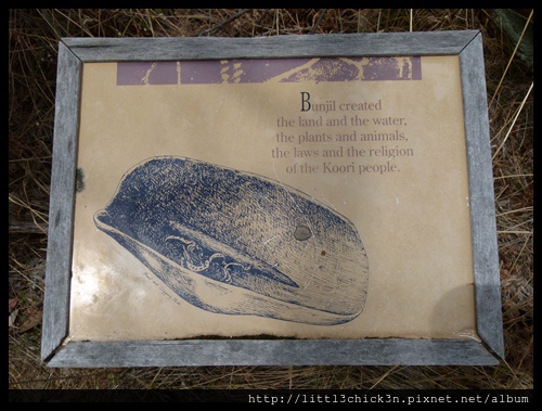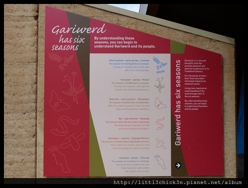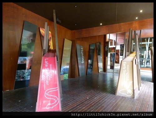 Jono跟展示中心的管理員打聲昭呼,管理員便帶大家先去看個紀錄短片。片中主要是在描述Bunjil這位土著的傳說。房內一片漆黑,我看到差點睡著,眼睛就不聽使喚。
