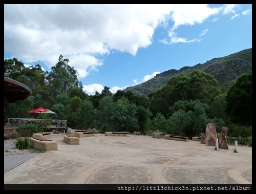 離咖啡廳戶外用餐區不遠有個展示區,展示出不少關於Grampians國家公園的歷史文化跟故事。逛完這區大家一前一後走去展示中心。