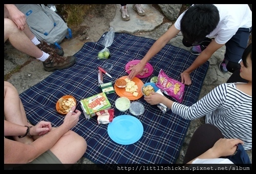 一個半小時不到我們已到達目的地,身處在682公尺的高度。在去觀景台前,我們先在峭壁邊緣來個野餐吧。今天的午餐跟昨天的差不多,說這些是零食也不為過,難怪這團這麼便宜。唉呀~剛剛在文化中心的咖啡廳時怎麼没想到去買個三明治什麼的。